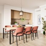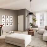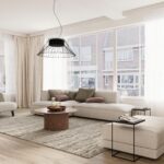 De woonkamer heeft een royale afmeting van circa 50m2 en is heerlijk licht door de grote raampartijen in de voor- en zijgevel. De living is stijlvol afgewerkt met een visgraat PVC-vloer en glad gestucte wanden -en (hoog) plafond met sierlijsten.