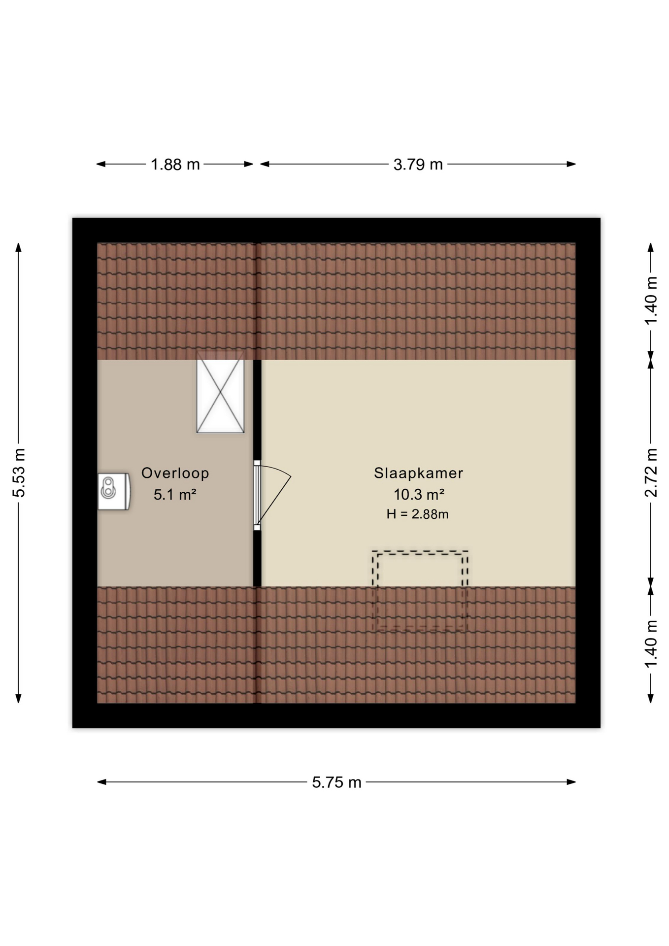 - Ruime zolderverdieping, bereikbaar via een steektrap.