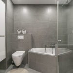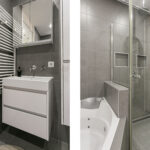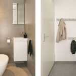 De moderne badkamer, vernieuwd in 2017, is compleet uitgevoerd met een ligbad, een ruime inloopdouche, een wastafelmeubel én een tweede toilet. De strakke afwerking en neutrale kleurstelling zorgen voor een tijdloze en luxe uitstraling.