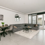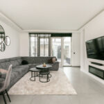 De uitgebouwde woonkamer is royaal van opzet en heerlijk licht. Dankzij de grote raampartijen en de open verbinding met de serre ontstaat een fijne leefruimte waar binnen en buiten naadloos in elkaar overlopen.
