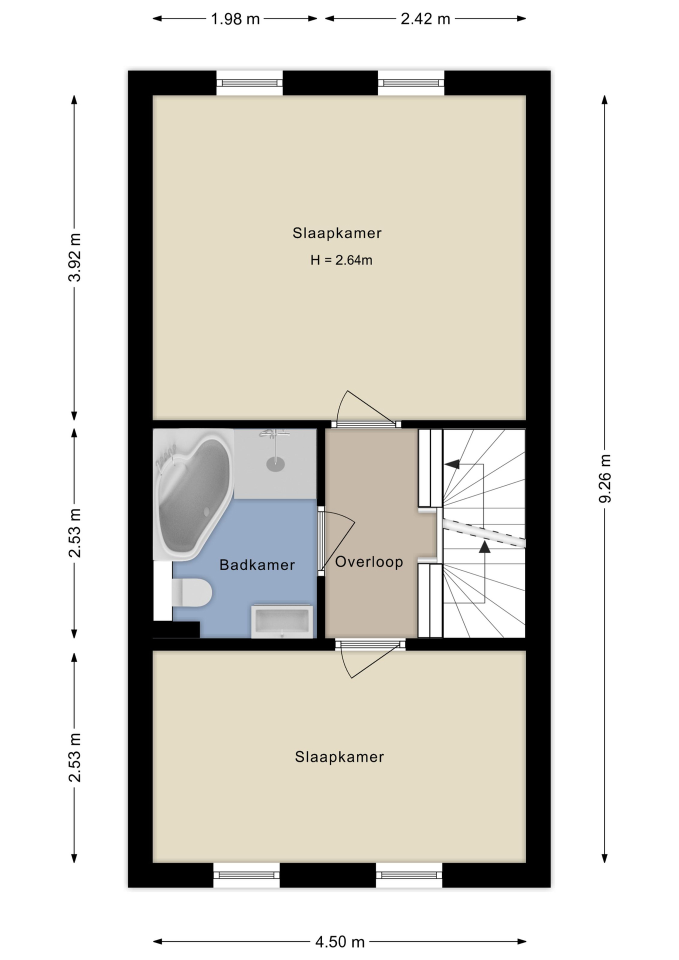 Op de eerste verdieping bevinden zich twee ruime slaapkamers over de volledige breedte, beide prettig van formaat en flexibel in te richten.