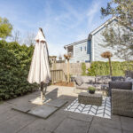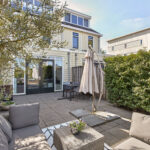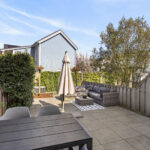 De achtertuin is voorzien van sierbestrating en een terras aan het water. Door de ligging op het noorden kan je in de avond heerlijk lang genieten van de zon.