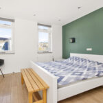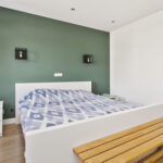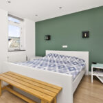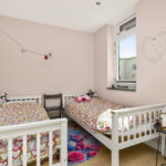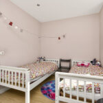 De twee slaapkamers op deze verdieping zijn circa 10 en 15 m2 groot en voorzien van een laminaatvloer, gestucte wanden en vaste schuifkastenwand.