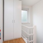Een gesloten trap brengt je naar de 1e verdieping. Hier heb je de beschikking over drie slaapkamers en een tweede toilet. Twee slaapkamers zijn ruim en licht door de brede raampartijen. De derde slaapkamer is wat kleiner, maar je kunt hem prima inrichten als werkkamer, logeerkamer of kinderkamer.