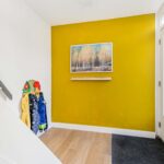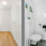 Ruime hal met toilet, meterkast en trapopgang. De lichte woonkamer met aangrenzende eetkamer en open keuken vormt een sfeervolle…