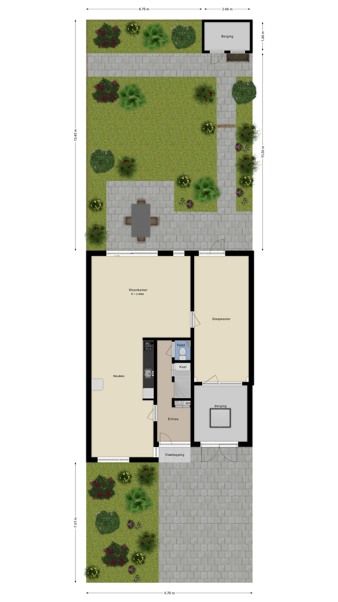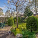 De woonkamer aan de achterkant is een oase van licht, en de schuifdeur brengt je direct in de ruim 13 meter diepe groene tuin op het oosten – met genoeg zon en twee gezellige terrassen plus een prachtige vijver. Voorzijde biedt een oprit voor een auto en achterin de diepe tuin staat een houten berging voor de tuingereedschap. Ook zijn er prachtige bomen die voldoende privacy bieden.
