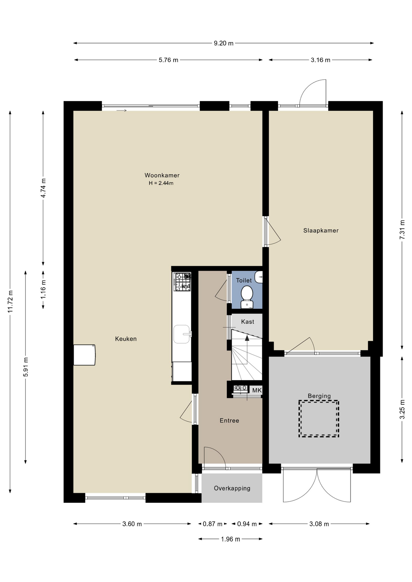 Eenmaal binnen, verwelkomt de ruime entree je met een toiletruimte, ruimte voor de garderobe, meterkast en een slimme kast onder de trap. De deur leidt je naar de lichte woonkamer en de ruime keuken. Met vloer-tot-plafond ramen baadt je zelfs in de winter in het licht. Aan de voorzijde van de woning is er perfecte ruimte voor een royale eettafel. En de keuken? Deze is voorzien van combi oven/magnetron, extra oven, vaatwasser en een 4-pits gasfornuis. Ook is er voldoende opbergruimte in de keuken aanwezig.
