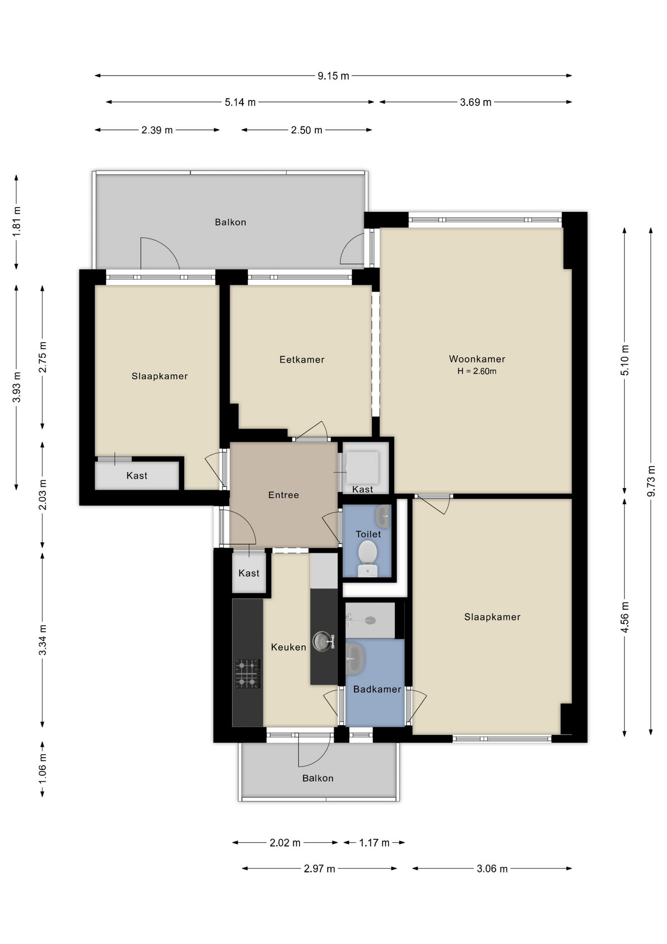 - 2 balkons (op het oosten en westen)