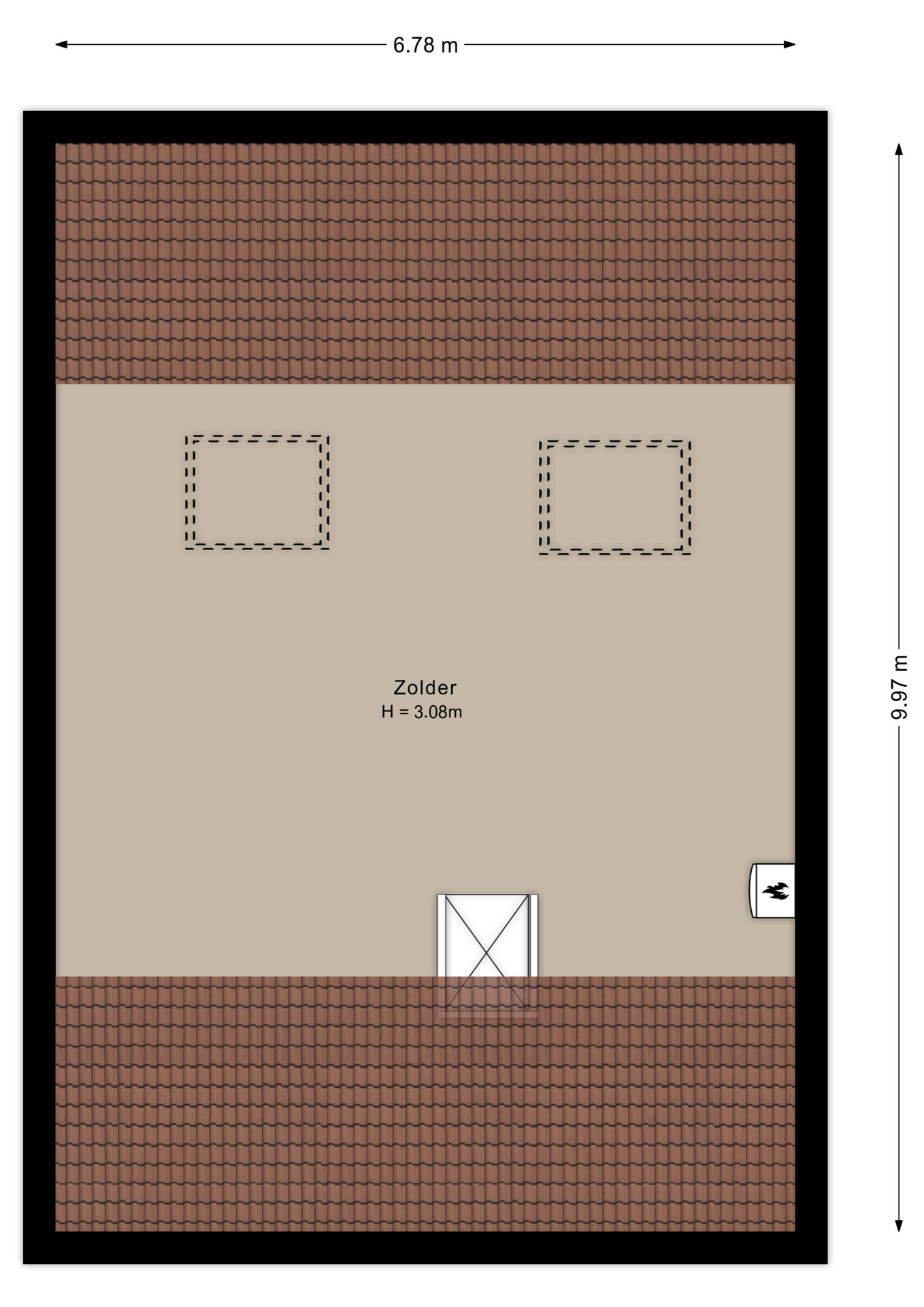 De zolder is bereikbaar via een eenvoudige 'trap'. Het is een hoge, ruime verdieping met veel mogelijkheden. Hier vind je de cv-combiketel, mechanische ventilatie, de omvormer van de zonnepanelen en twee dakramen die zorgen voor natuurlijk licht.