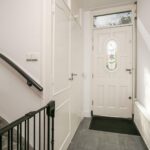 Entree, hal met tegelvloer, glad gestucte wanden- en plafond en paneeldeuren, hotel chique gestylede toiletruimte, meterkast met nieuwe en uitgebreide groepenkast, grote en verdiepte trapkast, trapopgang en toegang tot de living.