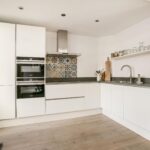 De living loopt haast ongemerkt over in de open keuken, die aan de achterzijde van de woning is gelegen. De keuken is voorzien van een modern, L-vormig keukenblok uit 2018 met composiet aanrechtblad en veel werk- en kastruimte. De inbouwapparatuur bestaat uit een koel-/vriescombinatie, inductie kookplaat, combimagnetron, oven, RVS-afzuigkap, vaatwasser en een kokend waterkraan. In de keuken tref je tenslotte ook de toegangsdeur naar de achtertuin.