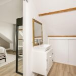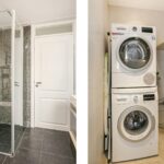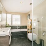 Naast een ligbad met luxe inbouwkranen, is de badkamer voorzien van een grote inloopdouche met regen- en handdouche en luxe inbouwthermostaatkraan, breed badmeubel met wastafel en twee kranen, hangend closet, designradiator, mechanische ventilatie en grote raampartij met elektrisch rolluik.