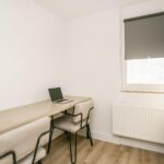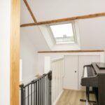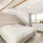De zolderkamer is met circa 15m2 zeer ruim van afmeting en heerlijk licht door de dakkapel aan de achterzijde en het Velux-dakraam aan de voorzijde. De stijlvolle kamer is afgewerkt met een PVC-vloer en glad gestucte wanden -en plafond en beschikt over een eigen airco en bergruimte achter de knieschotten.