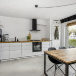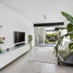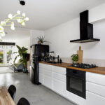 Via de eigen voortuin bereik je de voordeur van het appartement. Je komt binnen in de woonkeuken, een gezellige en complete ruimte met moderne inbouwapparatuur (2018) en voldoende plek voor een eettafel.