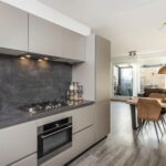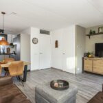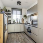 De woonkamer heeft vloerverwarming, een grote raampartij met schuifpui en een praktische trapkast voor extra opbergmogelijkheden. Aan de voorzijde is de open keuken gesitueerd voorzien van diverse inbouwapparatuur zoals o.a. een gaskookplaat met RVS-afzuigkap, combi oven, vaatwasser, koel-/vriescombinatie en veel werk-/kastruimte.