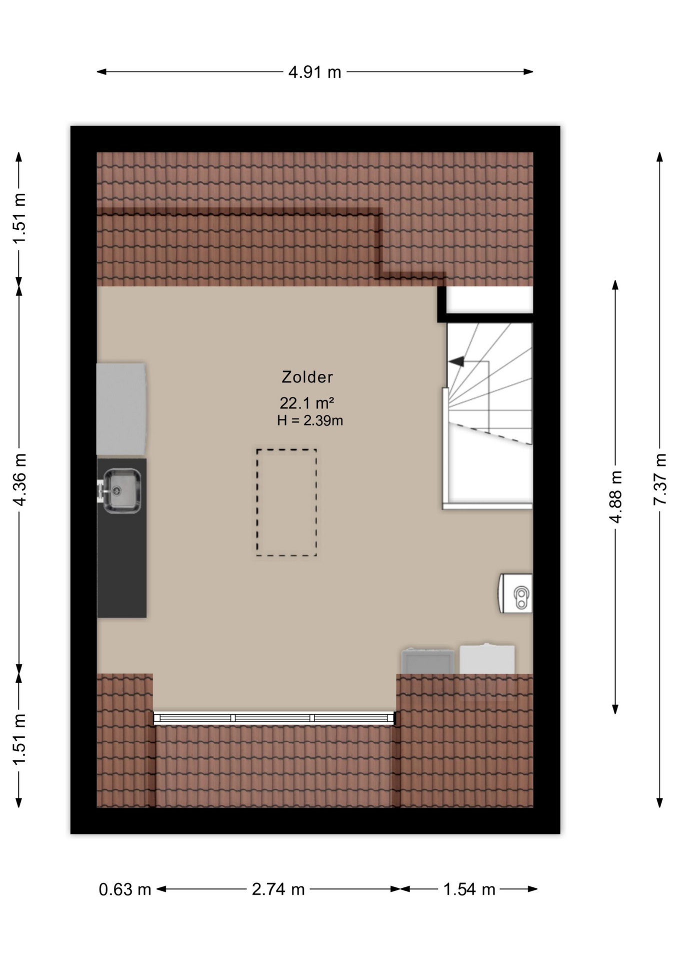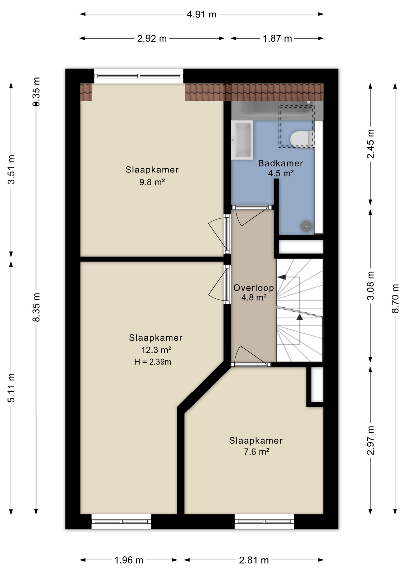 - Drie ruime slaapkamers en 1 ruime zolderkamer;