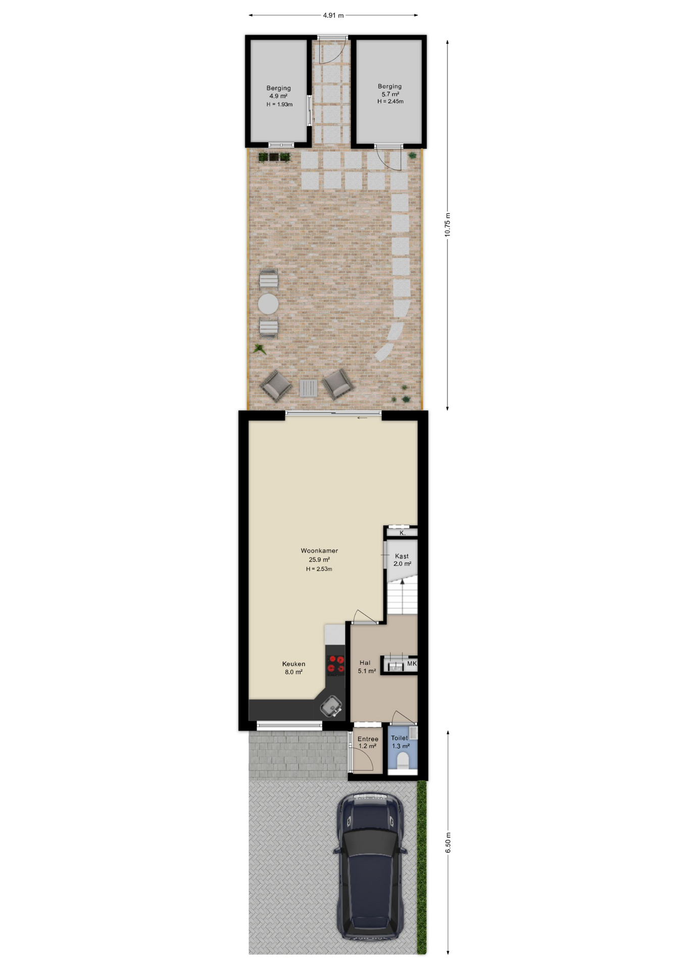 • Twee stevige bergingen in de achtertuin voor extra opslag