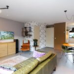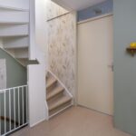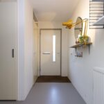 Je betreedt de woning in de ruime hal; deze is voorzien van een toiletruimte met fontein, de meterkast, de trapopgang naar de verdieping, lichte wanden en een linoleum vloer. Je krijgt toegang tot de woonkamer…