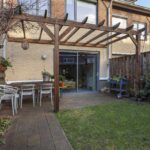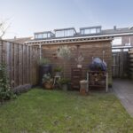 De ruime voortuin is aangelegd met sierbestrating, diverse vaste beplanting, een robuuste pergola en een houten berging. Er is genoeg ruimte voor een gezellig zitje. De achtertuin is gelegen op het zuiden en voorzien van sierbestrating, borders met vaste beplanting, gazon, een grote pergola, een houten berging en een achterom. Je creëert met gemak meerdere zitplekjes om te genieten in deze zonnige tuin.