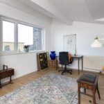 De overloop brengt je drie slaapkamers en de badkamer. De slaapkamers zijn ruim en voorzien van een nette afwerking, veel lichtinval en een lichte PVC-vloer.