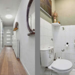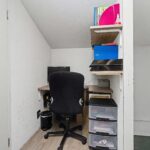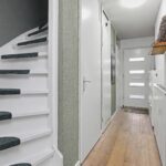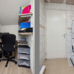De overloop geeft toegang tot de slaapkamer en een aparte wasruimte met witgoedaansluitingen.