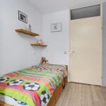 De overloop geeft toegang tot drie slaapkamers en de badkamer. De twee slaapkamers gelegen aan de achterzijde van de woning zijn circa 15 en 9 m². De derde slaapkamer gelegen aan de voorzijde is circa 13 m² groot. De slaapkamers zijn voorzien van een laminaatvloer en gestucte wanden. De badkamer beschikt over een ligbad, douche, dubbele wastafel en een toilet. Fijn is hier het raam welke zorgt voor natuurlijke ventilatie.