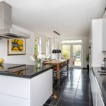 In 2020 is de woonkeuken (ca. 33 m2) compleet vervangen en gemoderniseerd. De keuken is luxe uitgevoerd en beschikt over een natuurstenen aanrechtblad, riant kookeiland, vele bergkasten, een afzuigkap, vaatwasser, kookplaat, vriezer, koelkast en twee combi-ovens. Deze ruimte beschikt daarnaast over een natuurstenen tegelvloer met vloerverwarming en glad gestucte wanden, alsmede veel charme door het glas in lood.