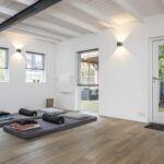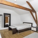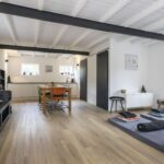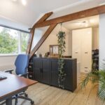 Doordat de woning over een hoog mansardedak beschikt voelen de ruimtes extra groot aan. De houten balken zorgen daarnaast voor extra veel sfeer.
