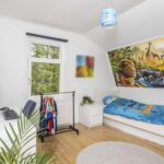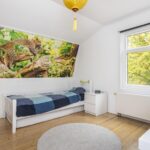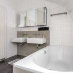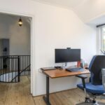 Via de overloop zijn een viertal goed bemeten slaapkamers te bereiken van ca. 19 m2, 16,5 m2, 12,5 m2 en 12,5 m2, alsmede een apart toilet met fontein, de wasruimte en de moderne badkamer met dubbele wastafel, ligbad, vloerverwarming en inloopdouche. De overloop is eveneens erg ruim en voorzien van een dakkapel. Hierdoor is deze ruimte zeer geschikt voor gebruik als werkruimte/thuiswerkplek.
