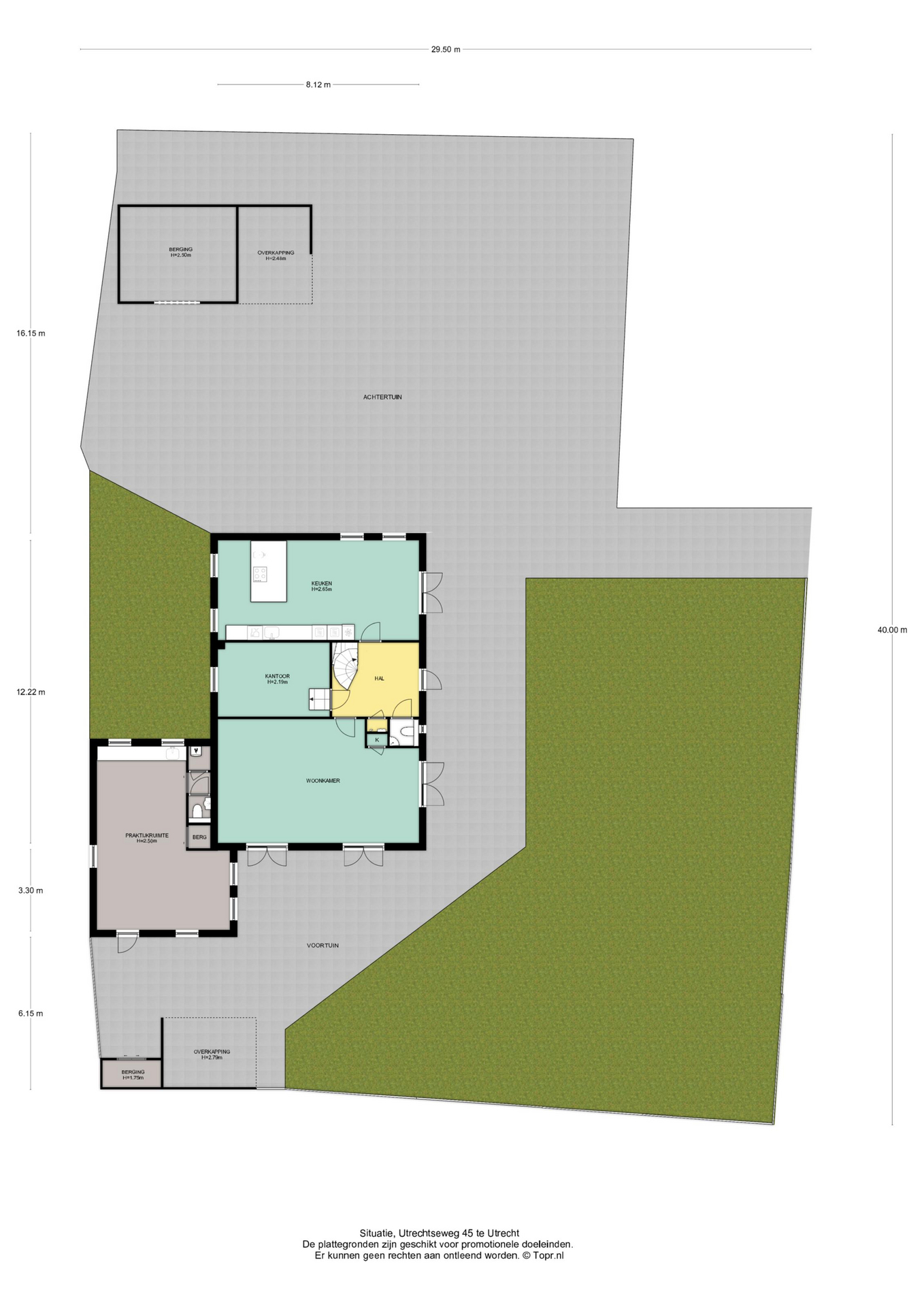 - Woonoppervlakte 187 m2, gebruiksoppervlakte praktijkruimte 35 m2;