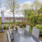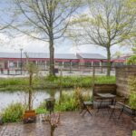 De volledig vrij gelegen achtertuin is fraai aangelegd met sierbestrating, borders en vaste beplanting en voorzien van een zonwering, parasol en houten tuinkast. Op het terras direct grenzend aan het water heb je mooi uitzicht over de groene en rustige woonomgeving en door de gunstige ligging op het noordwesten geniet je van het einde van de ochtend tot laat in de avond van de zon!