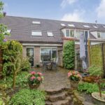 De voortuin is verzorgd aangelegd en biedt toegang tot de schuur en de voordeur van de woning.