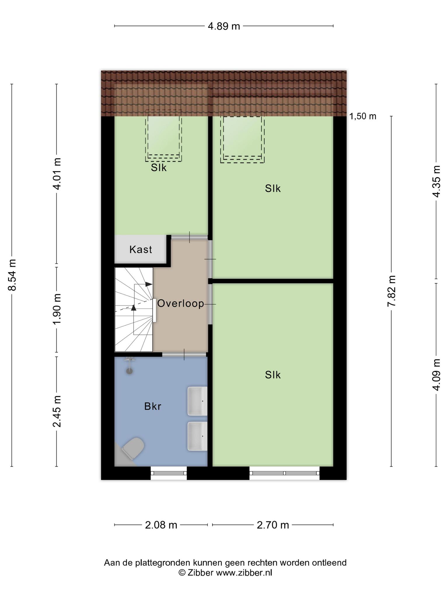 De 1e verdieping is voorzien van drie slaapkamers met prima afmetingen. De kamers aan de achterzijde hebben beiden een Velux-dakraam en de kamer aan de voorzijde beschikt over een vaste hoogslaper met ingebouwde kastruimte.