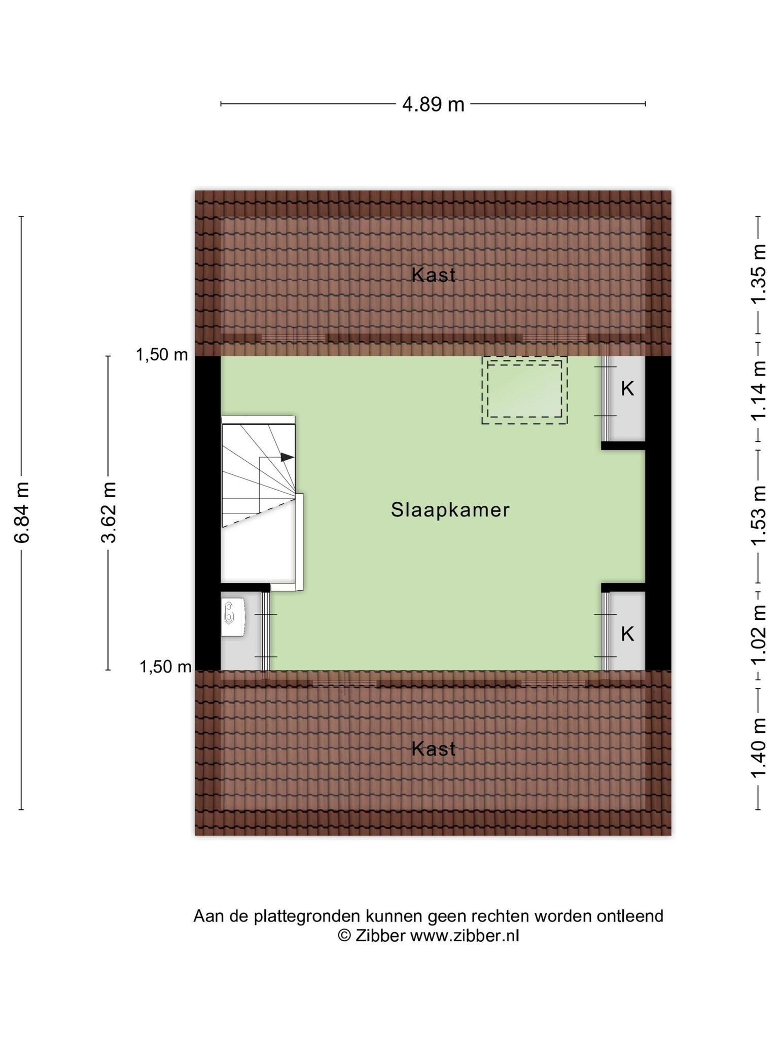 Op de 2e verdieping, die via de vaste trap is te bereiken, is een riante zolderkamer gerealiseerd. Deze fijne en multifunctionele ruimte is afgewerkt met een vinylvloer en beschikt over een Velux-dakraam, diverse praktische vaste kasten en een separate CV-kast.