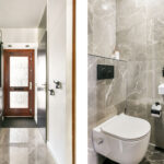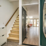 Entree, hal met tegelvloer, toiletruimte, meterkast en de mooi verlichte trapopgang. De luxe toiletruimte is in 2022 vernieuwd en voorzien van een hangend closet met bidet functie en een fonteintje.