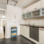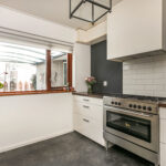 De moderne en ruime keuken is aan de voorzijde van de woning gelegen en voorzien van een keukenblok aan beide zijden met een koel -/ vriescombinatie, RVS- gasfornuis met oven, afzuigkap en vaatwasser. Prettig is het grote raam met zicht op de voortuin/carport. De keuken is af te sluiten door middel van een schuifdeur.