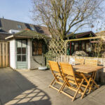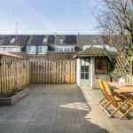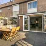 De achtertuin is ruim van afmeting en voorzien van grote tegels en borders, houten tuinhuis en achterom. Door de ligging op het zuidwesten kunt u hier eindeloos genieten van de zon!