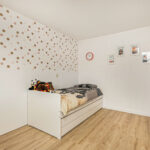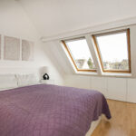 De 2e verdieping beschikt verder over een ruime slaapkamer met laminaatvloer, twee Velux-dakramen en de nodige bergruimte.