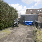 De ruime achtertuin is fraai aangelegd met moderne bestrating en is voorzien van een stenen berging met elektra, elektrische zonwering en achterom.
