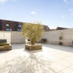 De heerlijk ruime mediterrane tuin (ca. 93m²) is gelegen op het zonnige zuidoosten en voorzien van keramische tegels, In-Lite verlichting, verhoogde borders en een elektrisch zonnescherm. De veel privacy biedende tuin is een oase van rust, door de kantelbare shutters bepaal je zelf het zicht naar de singel.