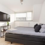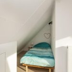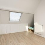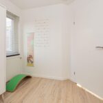 Via de trapopgang bereik je de tweede verdieping met voorzolder voorzien van een tweede wasmachine- en drogeraansluiting, cv-installatie, mechanische ventilatie-unit en Velux-dakraam. De ruime 5e slaapkamer heeft een oppervlakte van circa 13m² en is heerlijk licht door twee grote Velux-dakramen. Ook deze verdieping is voorzien van een laminaatvloer, glad gestucte wanden en heeft daarnaast veel bergruimte achter de knieschotten.