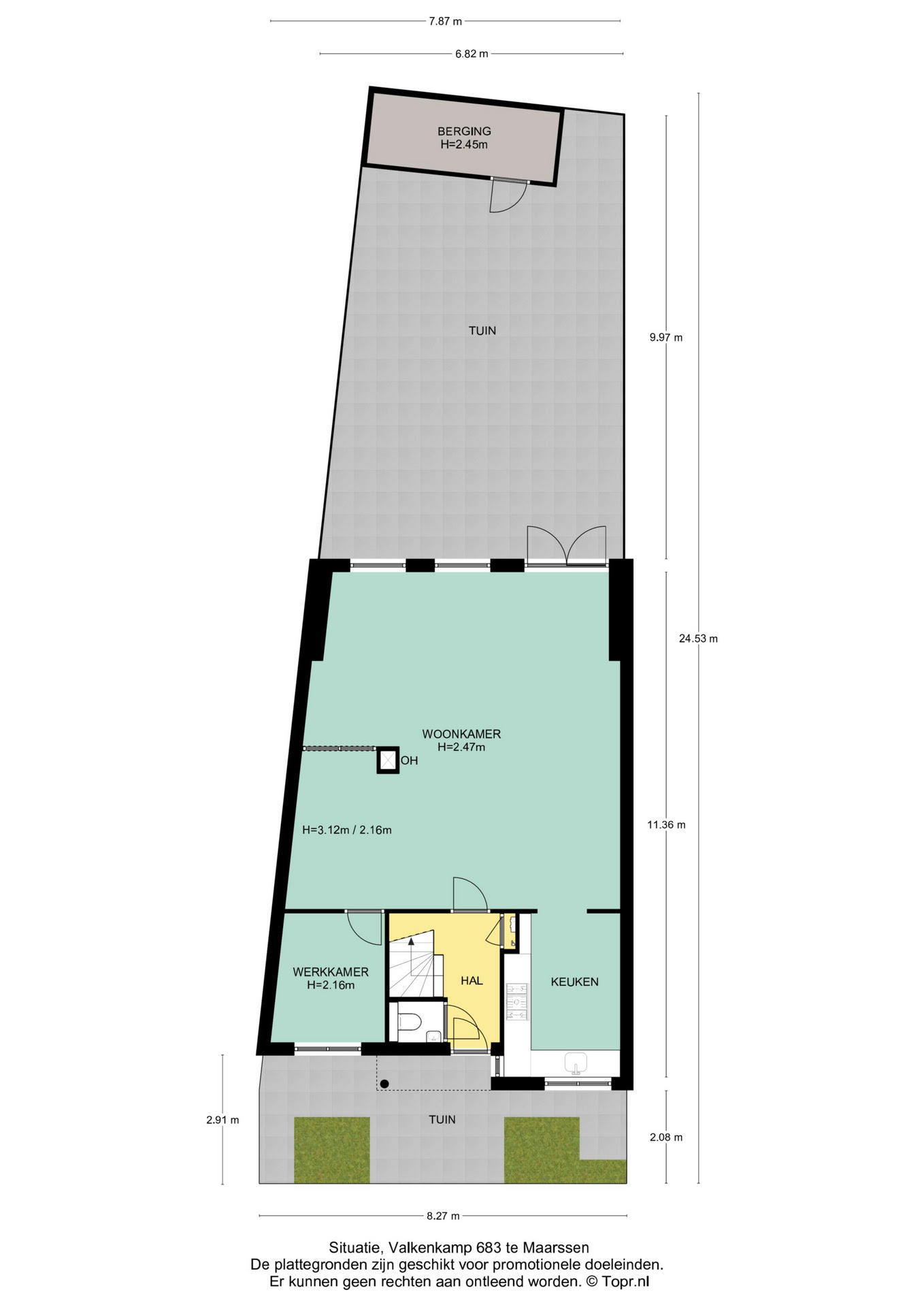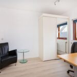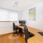 Vanuit de woonkamer is de werkkamer te bereiken welke circa 7m² groot is en voorzien is van een houten vloer en spuitwerk wanden.