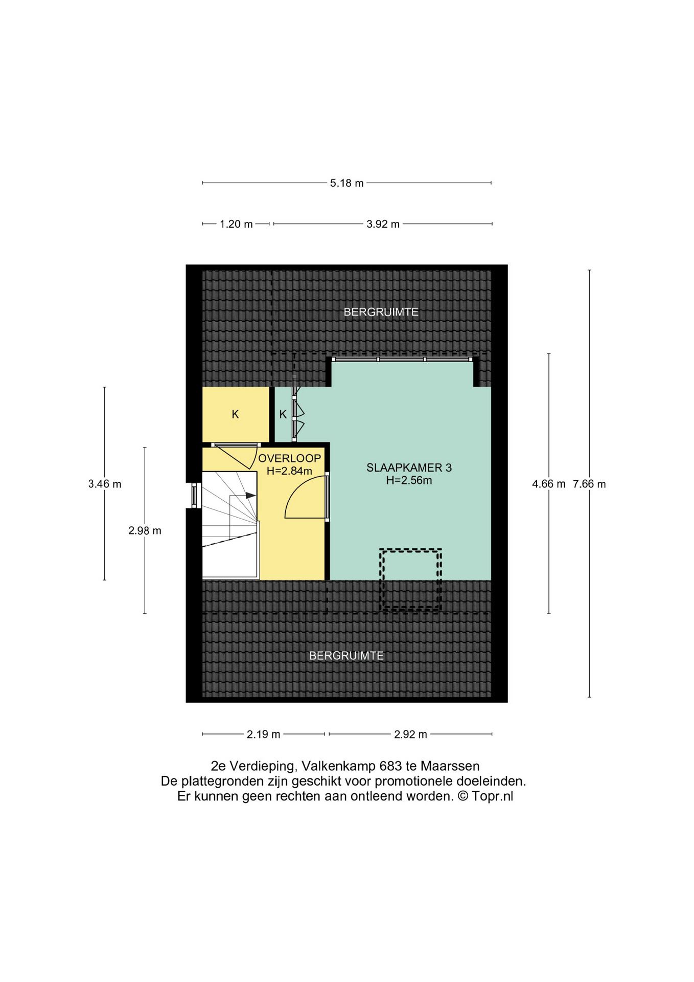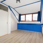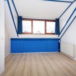 De derde slaapkamer ligt over de volledige lengte van de woning, is circa 15m² groot en heeft een dakkapel aan de achterzijde, een dakraam aan de voorzijde, een inbouwkast, laminaatvloer, behangwanden en bergruimte achter de knieschotten.