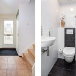 Voortuin met toegang tot de woning. Via de voordeur bereik je ruime hal toegang tot de (vernieuwde) meterkast, toiletruimte, woonkamer en trapopgang naar de eerste verdieping. De hal is voorzien van een plavuizenvloer en designradiator. De toiletruimte is modern afgewerkt en voorzien van een hangend closet en fonteintje.