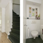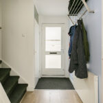 Entree, hal met meterkast, modern afgewerkte toiletruimte voorzien van hangend toilet en fonteintje en trapopgang naar de eerste verdieping.