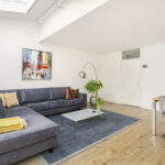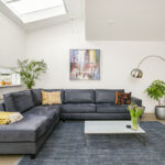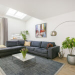 Royale en lichte gezinswoning – woonkamer met hoog plafond en daklicht – vier slaapkamers – zonnige diepe achtertuin – fijne kindvriendelijke ligging