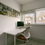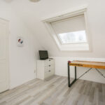 De ruime vierde slaapkamer aan de achterzijde is voorzien van een vernieuwde dakkapel met kunststof kozijnen. Aan de voorzijde zorgt een Velux dakraam voor extra daglicht. Deze verdieping beschikt bovendien over veel praktische bergruimte achter de knieschotten en is eveneens voorzien van een nette laminaatvloer.