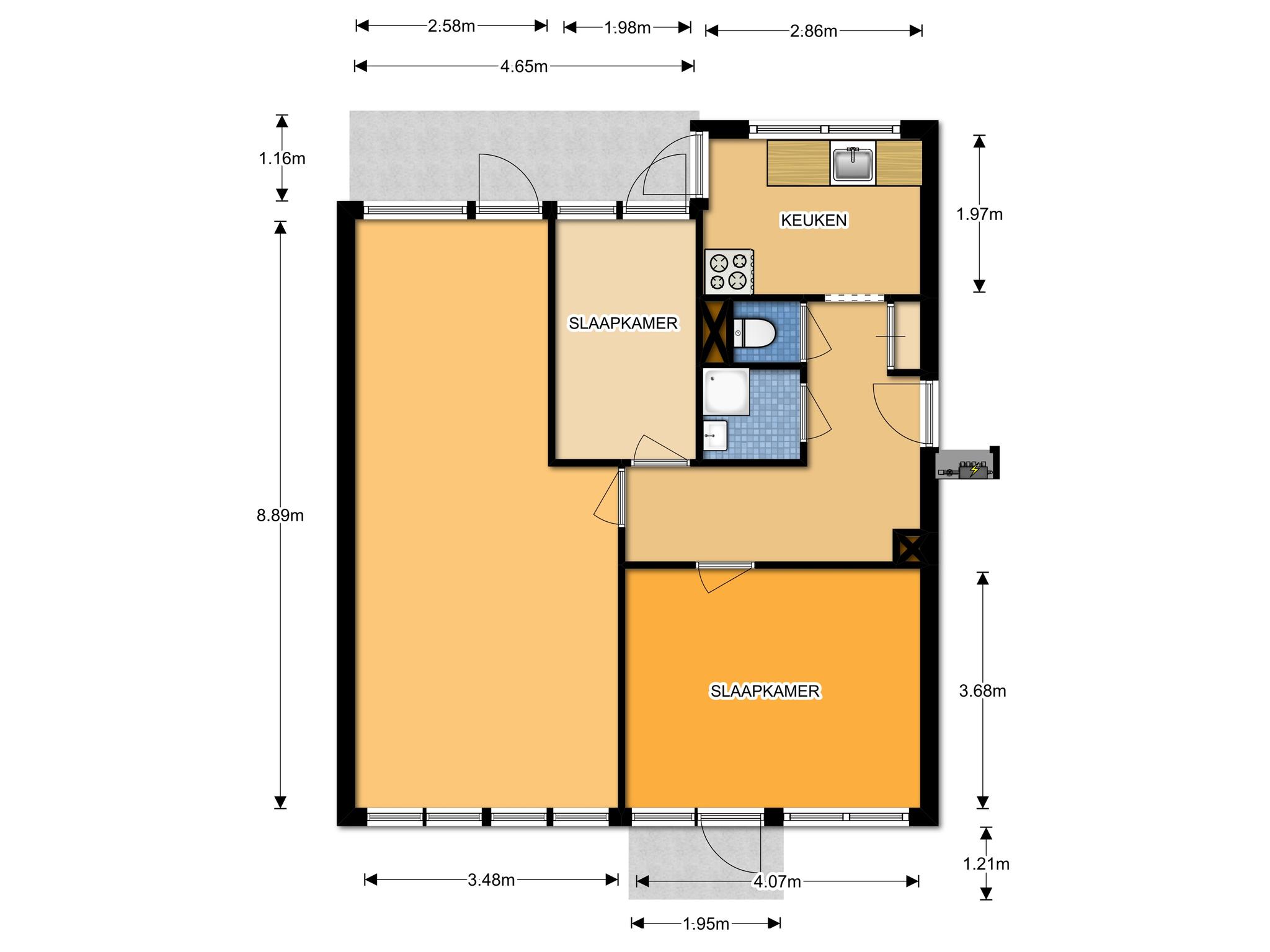 - gebouwgebonden buitenruimte (balkons): 8 m2