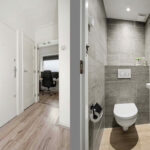 Entree, ruime hal met meterkast, toiletruimte en toegang tot alle vertrekken.