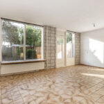 Via de voortuin kom je binnen in de entreehal met toegang tot de meterkast, trapkast en het toilet met fontein. Vanuit hier loop je door naar de royale woonkamer, die dankzij de grote raampartijen veel natuurlijk licht binnenlaat. De gesloten keuken is zowel via de hal als de woonkamer bereikbaar en is uitgerust met een ruime, gedateerde hoekopstelling. Vanuit de woonkamer stap je direct de zonnige achtertuin in.